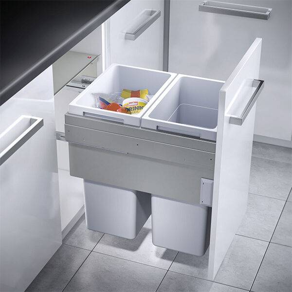 Bote basurero extraíble EURO CARGO-ST para gabinete de 450 mm. Cap total 76 L/ 2 botes de 38 L